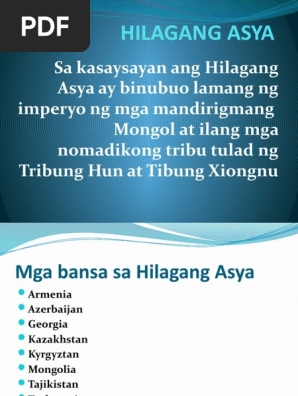 Ang Hilagang Asya ay isang rehiyon ng Asya. KALAGAYANG PANG- EKONOMIYA NG ASYA SA KASALUKUYAN Ang Pag-unlad ng Kalakalan at Kultura sa Kasalukuyang Asya 2. GDP na nominal 2011.