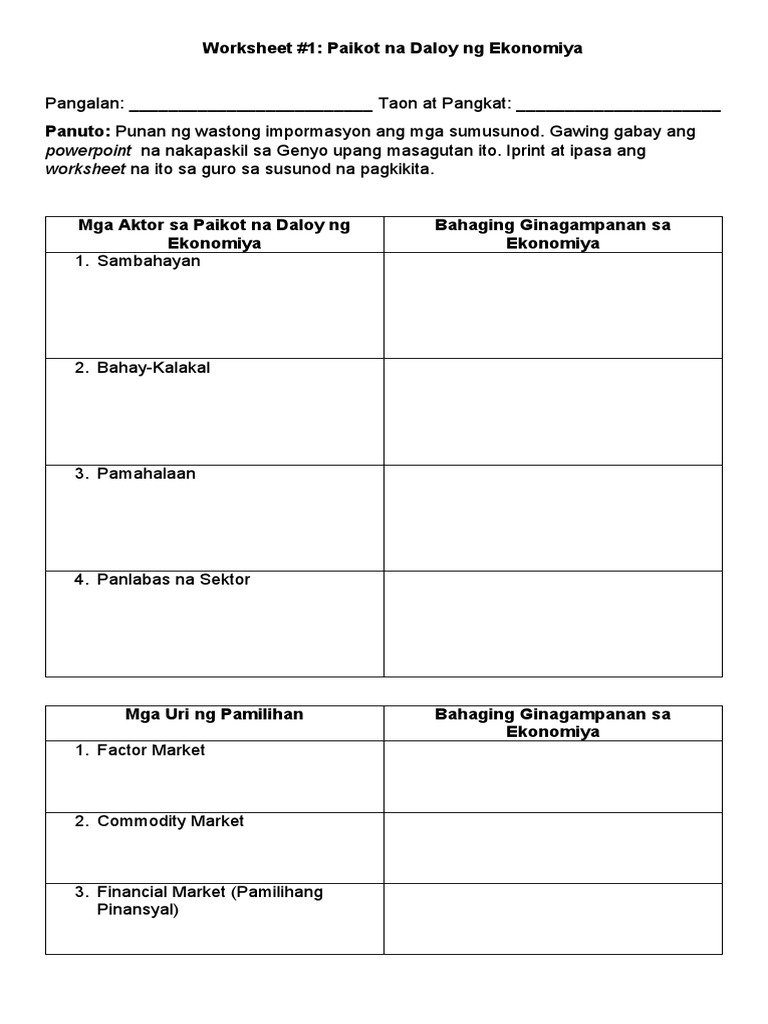 Worksheet 1 Paikot Na Daloy Ng Ekonomiya Pdf