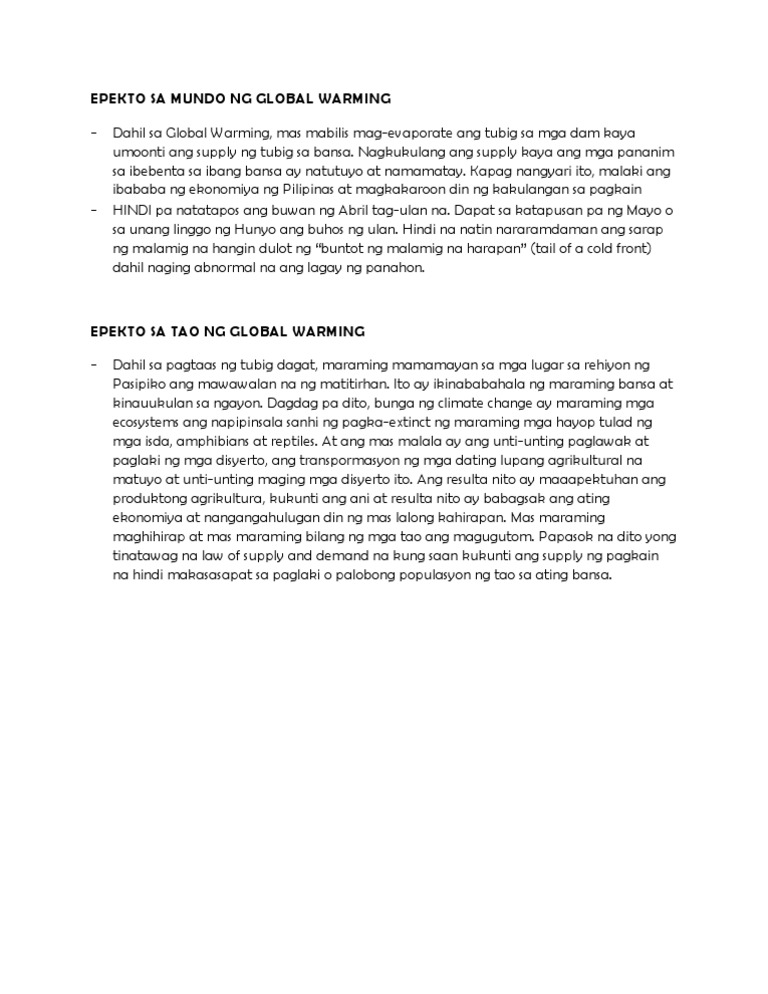Epekto Sa Mundo Ng Global Warming Pdf