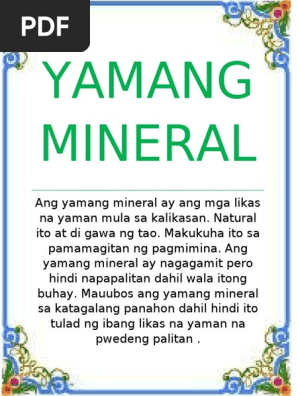 Pangalawa ang tao ang nagiging susi sa pag-unlad at paglago ng ekonomiya. May posibilidad na maubos. Kahahalagan ng yamang mineral.