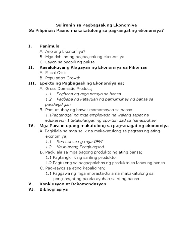 Suliranin Sa Pagbagsak Ng Ekonomiya Pdf